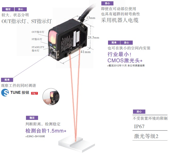 可不受工件表麵狀態及傾斜的影響穩定檢測,即使工件發生變化,也無需再設定。