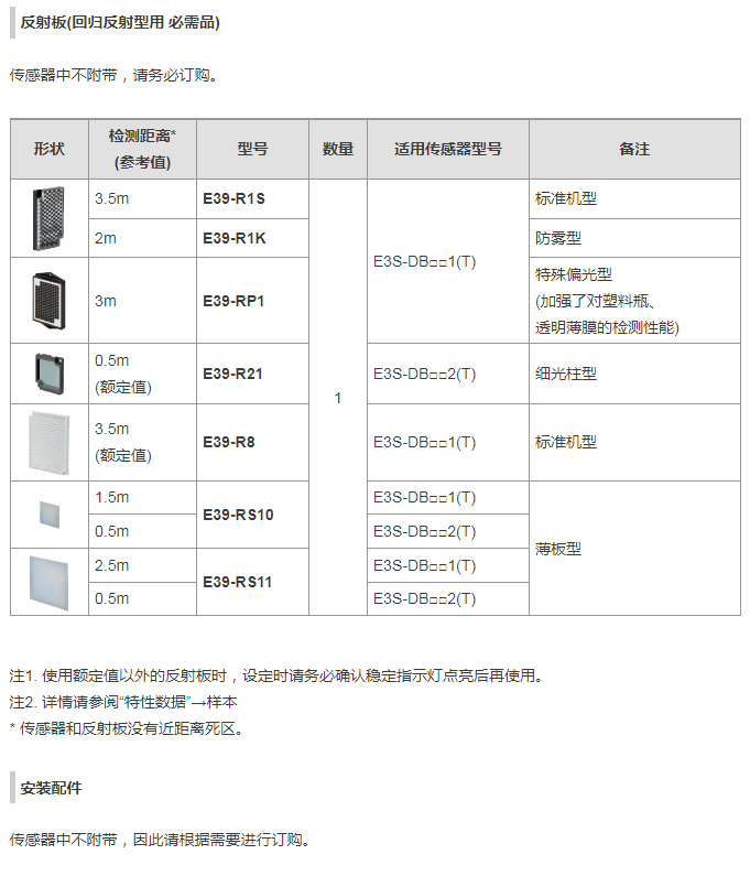 *1.不附帶反射板。請根據不同用途另行購買反射板。