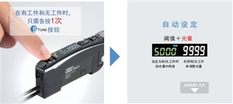 隻需在有/無工件的狀態下各按1次 按鈕,即可批量設定理想光量和閾值。