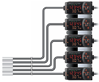 隻要把運算單元夾到放大器之 間,就可以將2台傳感器的運 算結果顯示在一側的放大器 上。設定時隻需在一側放大器 上輸入需要的參數 即可。