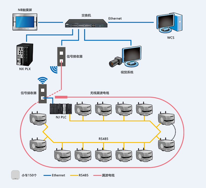 采用一主一從兩台PLC構建整個核心控製係統,PLC間通過EtherNet/IP網絡進行數據信息快速穩定地交互,不僅減少了客戶的硬件成本,也提高了設備的分揀效率和準確率。