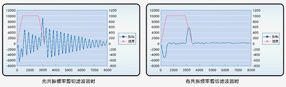 穿梭車運行中的平順性(振動大),對貨架的平整度和牢固度提出了很高的要求,因此歐姆龍通過S型加減速曲線設定、共振頻率剪切濾波器等功能的附加,在機械結構不更改、運動時間不變的條件下,對振動進行了有效抑製,實現安全運輸防掉落。